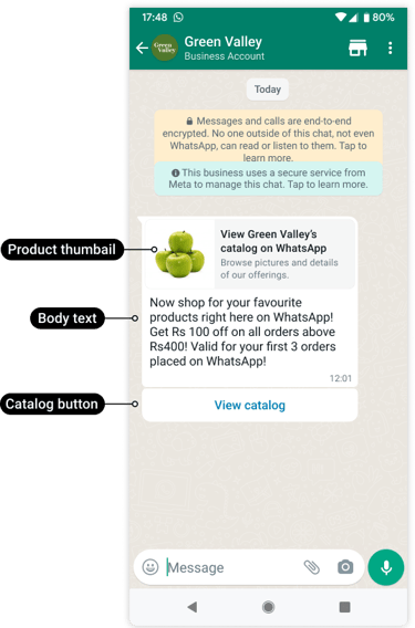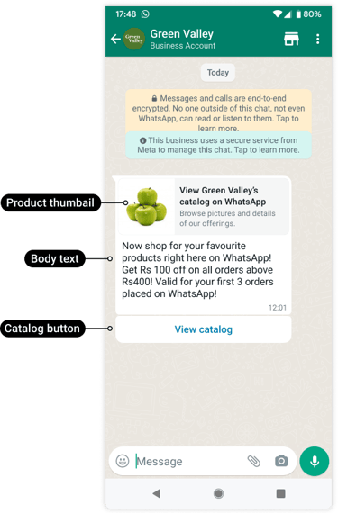Showcase the product range directly within WhatsApp, allowing users to browse and make selections effortlessly.